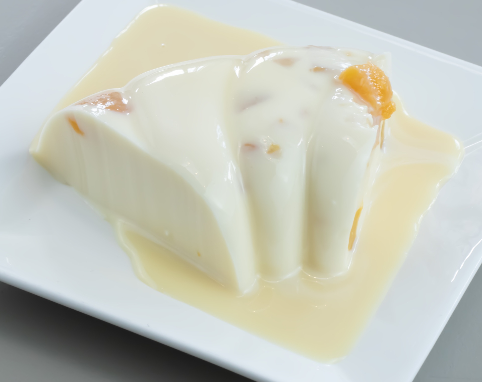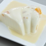 Exótica combinación de tres leches frías con delicados trozos de melocotón.